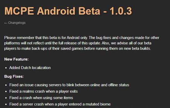 我的世界手機版1.0.3.0測試版發(fā)布啦,這個測試版中新增支持荷蘭語并且加入了新的彩蛋,修復了大量的BUG,為即將到來的1.0.3正式版做準備,一起來看看吧!