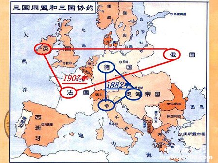 1882年德、奧、意三國同盟條約的締結(jié),使法國更加急于打破自己所處的孤立狀態(tài),這就大大推動了法俄兩國的接近。1893年,法國與俄國簽訂條約,1904年和1907年英國又先后與法俄簽訂協(xié)定。至此,英、法、俄三國終于走到了一起,成為與德、奧、意相對立的軍事集團。法俄是如何走到一起的、英國又是怎樣協(xié)調(diào)好與自己的宿敵法俄的關(guān)系的呢?