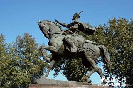 他叫“帖木兒”(意為鋼鐵),公元1336年4月8日生于撒麻爾干以南的渴石城(今綠城)。帖木兒朝的史學家企圖把他的家譜追溯到成吉思汗的一位伙伴甚至親戚。事實上他是純正的突厥人,出身于河中突厥巴魯剌思部的一個貴族之家,當時巴魯剌思部還統(tǒng)治著渴石。