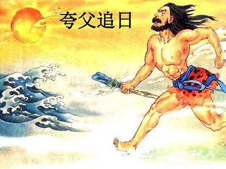 同出《山海經(jīng)》的另一說是“夸父與日逐走”,認(rèn)為他自恃奔走飛快,而想與太陽比賽。