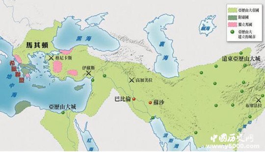 亞歷山大帝國,又稱馬其頓帝國,由著名的征服者亞歷山大大帝開創(chuàng),它版圖東起蔥嶺與印度河平原,南至波斯灣并包括埃及,西到色雷斯和希臘,北抵黑海及阿姆河,是歷史上繼波斯阿契美尼德王朝之后第二個地跨亞歐非三洲的帝國。