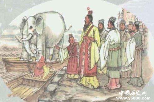 曹沖稱象的故事出自《三國志·魏書·武文世王公傳》:“(曹沖)生五、六歲,智意所及,有若成人之智。時孫權曾致巨象,太祖欲知其斤重,訪之群下,咸莫能出其理。沖日:‘置象大船之上,而刻其水痕所至,稱物以載之,則??芍樱?,太祖大悅,即施行焉”。