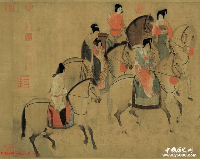 圖:宋徽宗趙佶摹張萱虢國(guó)夫人游春圖卷