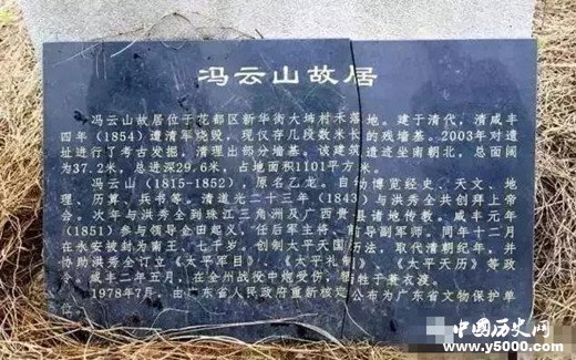 馮云山1815——1852,原名乙龍。自幼博覽經(jīng)史、天文、地理、歷算、兵書等。清道光二十三年(1843)與洪秀全共創(chuàng)拜上帝會。次年與洪秀全參加與領(lǐng)導(dǎo)金田起義,任后軍主將、前軍副軍師。同年十二月在永安被封為南王、七千歲。創(chuàng)制太平天國歷法、取代清朝紀(jì)年,并協(xié)助洪秀全訂立《太平軍目》、《太平禮制》、《太平天歷》等政令。咸豐二年五月,在全州戰(zhàn)役中炮受傷,犧牲于蓑衣渡。”