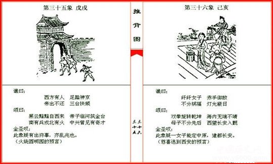 《推背圖》相傳為唐代袁天罡與李淳風所作,是中國歷史上最為經(jīng)典的未來學巨著?!锻票硤D》金圣嘆批注版共60幅圖像,對應(yīng)60段讖語和詩。