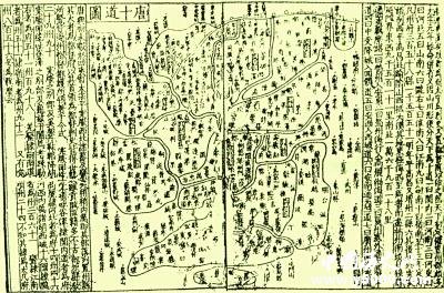 唐朝規(guī)定,每五年(原為三年)須向職方報(bào)送地圖,進(jìn)而編制全國(guó)《十道圖》。所謂“十道”,就是自然界限,唐太宗貞觀元年(公元627年)將全國(guó)劃分為十大區(qū)域,唐玄宗主政后增至十五道。據(jù)《舊唐書(shū)·地理志一》,唐朝疆域,“凡東西九千五百一十里,南北一萬(wàn)六千九百一十八里。”