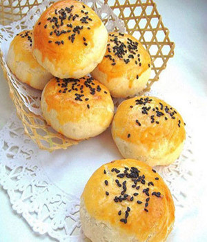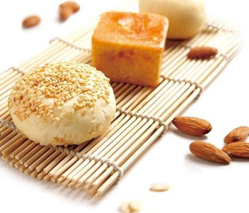 蘇式月餅。皮層酥松,色澤美觀,餡料肥而不膩,口感松酥,是蘇式糕點的精華。蘇式月餅的花色品種分甜、咸或烤、烙兩類。甜月餅的制作工藝以烤為主,有玫瑰、百果、椒鹽、豆沙等品種,咸月餅以烙為主,品種有火腿豬油、香蔥豬油、鮮肉、蝦仁等。其中清水玫瑰、精制百果、白麻椒鹽、夾沙豬油是蘇式月餅中的精品。 蘇式月餅選用原輔材料講究,富有地方特色。甜月餅餡料用玫瑰花、桂花、核桃仁、瓜子仁、松子仁、芝麻仁等配制而成,咸月餅餡料主要以火腿、豬腿肉、蝦仁、豬油、青蔥等配制而成。皮酥以小麥粉、綿白糖、飴糖、油脂調制而成。
