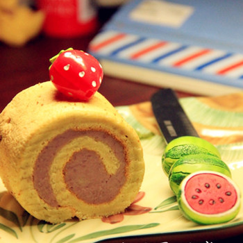 從靠近身體的一端開始,緊密地向外卷。用油紙將整個(gè)蛋糕卷起,收口朝下,用塑料袋裝好,放入冰箱冷藏2-3小時(shí)。定型后取出切片即可。