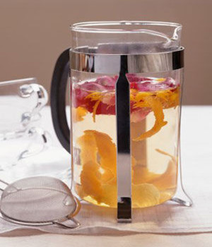 材料:柑桔10個(gè)、茶葉1包、水適量