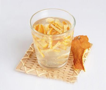 做法:將干橘子皮洗凈,撕成小塊,和茶葉一起放入茶杯中,用開(kāi)水沖入,蓋上杯蓋燜10分鐘左右,然后去渣,放入少量白糖。稍涼后就可以喝了。放入冰箱中冰鎮(zhèn)一下更好哦。