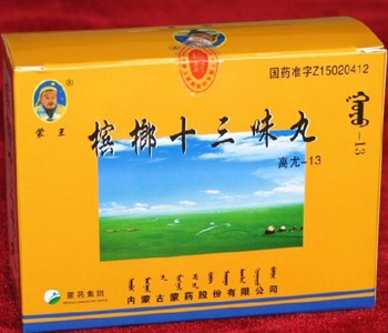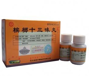 檳榔十三味丸是利用不同的制作方法“檳榔十三味丸蒙藥療法”,由檳榔、沉香、肉豆蔻、丁香、木香、廣棗、制草烏、干姜、蓽茇、胡椒、紫硇砂、當歸、葶藶子這十幾味中藥制成。檳榔十三味丸能鎮(zhèn)赫依、安神止痛、通利白脈傳導、促進血液循環(huán),從而改善神經(jīng)沖動的傳導和調(diào)節(jié)神經(jīng)肌肉興奮的作用,并且檳榔十三味丸無副作用,復發(fā)率低,療程短。