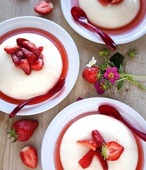 2、牛奶中加入自制香草糖(沒有用普通砂糖亦可)煮至約為70-80°,加入一半 或2/3的瓊脂攪拌,至瓊脂完全融化。