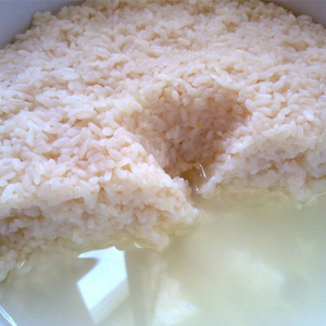 4、米飯冷卻到30°左右,然后把攪拌好的甜酒曲加入到米飯里。