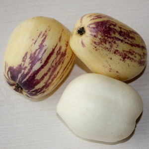 成熟的人參果果實形狀多似心臟形和橢圓形,果皮呈金黃色,有的帶有紫色條紋,有淡雅的清香,果肉清爽多汁。當我們在挑選人參果的時候,可以通過這些特點來判斷它是否成熟以及它的品質(zhì)。