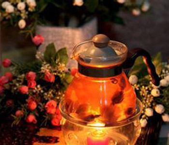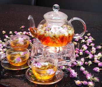 做法:先將山楂、枸杞子煎汁,然后沖入裝有茉莉花、玫瑰花的容器中,再稍煮后即可飲用。