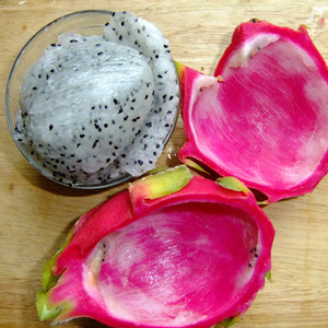 那么火龍果的皮要怎么吃呢?其實可以直接吃,當然最外層還是不吃了吧,還要清洗感覺有些麻煩哦。將里面的那層皮吃掉就ok了,配著火龍果果肉一起吃吧,營養(yǎng)又滋味。