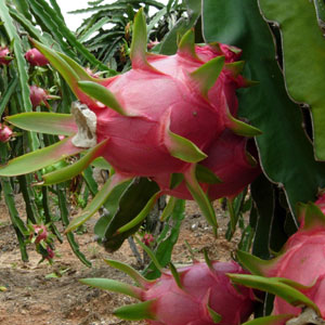 火龍果果實汁多味清甜、除鮮食外、還可釀酒、制罐頭、果醬等。花可干制成菜、顏色可提煉食用色素。