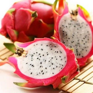 火龍果富含美白皮膚的維生素C及豐富的具有減肥、降低血糖、潤腸、預防大腸癌的水溶性膳食纖維。