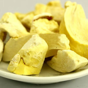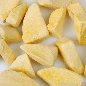 在榴蓮盛產(chǎn)時期,生產(chǎn)商會精心挑選品質(zhì)上乘、肉質(zhì)鮮美的榴蓮,采用最先進的-45℃急速冷凍系統(tǒng)將榴蓮瞬間急凍再真空干燥。真空冷凍干燥榴蓮,即先將新鮮水果果肉放置于冷凍干燥器內(nèi),然后即時急速冷凍,令果肉內(nèi)水分轉(zhuǎn)變成冰粒,再將其置于真空容器內(nèi),以進升華,將冰直接轉(zhuǎn)化成蒸汽。采用此法除只去掉水分外,果肉仍能維持原狀,更保留原有的營養(yǎng)價值和新鮮水果的維他命及礦物質(zhì)。