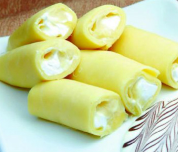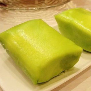 班戟,即pancake(松餅)的粵語音譯。但經(jīng)過香港人的改良后,已經(jīng)和原來的pancake有了較大的差異,成為一道“中國化”的甜品。班戟有多種口味:芒果的、香蕉的、榴蓮的等等,但是其中味道最特別、最值得嘗試的就是榴蓮班戟了。
