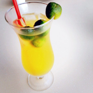 材料:青金桔10個(gè)、綠茶2茶匙(10ml)、蜂蜜適量、冰塊適量