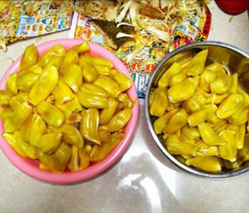 課外知識:菠蘿蜜樹液可直接用于外涂治療瘡癤紅腫,潰瘍,或由此引起的淋巴結(jié)炎。除此,近代醫(yī)學(xué)還從菠蘿蜜汁液和果皮中提煉制出一種蛋白水解酶,臨床用作抗水腫和消炎藥。