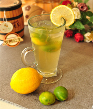 金桔檸檬水就是金桔和檸檬汁泡制而成的水,金桔檸檬水的主要材料就是金桔、檸檬,喝起來(lái)口感酸甜,更有減肥消脂的功效。炎炎夏季,喝上一杯金桔檸檬水不僅可以生津止渴,還可以開胃消食!金桔富含維生素C,有強(qiáng)化毛細(xì)血管的作用。經(jīng)常食用可美容養(yǎng)顏、止痰潤(rùn)喉、防感冒、治咳嗽。對(duì)抗高血壓、血管硬化、冠心病也有一定的療效。因此金桔檸檬水也十分適合平時(shí)養(yǎng)身保??!
