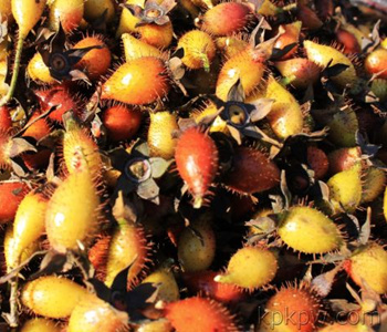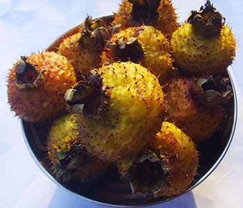刺梨子的果實(shí)是扁扁的球形,8、9月份成熟,果實(shí)是黃色的,有時(shí)又帶一些紅暈的,而且果皮上長(zhǎng)著不少小肉刺,“刺梨”這個(gè)名字就是這么得來(lái)的。