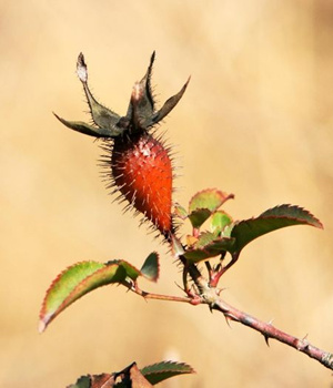 刺梨子又名金櫻子,其實(shí)是刺梨花托發(fā)育而成的假果,呈倒卵形,表面紅黃色或紅棕色,有突起的棕色小點(diǎn),可以入藥。