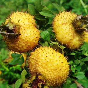 在城市中生活的人對刺梨都比較陌生吧!刺梨是一種生長在云南。貴州、四川等地野外的一種水果。因為它果皮上長滿著肉刺,又因為它是黃色的,所以人們將它命名為“刺梨”。其實它跟普通的梨關(guān)系不大哦!刺梨外表看似拒人千里,其實把它剖開之后,你就能看到它里面有肉的黃色果肉了,吃起來酸甜可口,汁液豐富,是可以解渴的水果。