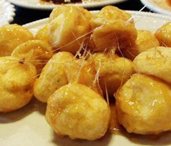 拔絲香蕉是以香蕉、糖、雞蛋為主要食材的漢族傳統(tǒng)名菜,屬魯菜系。菜品外脆里嫩,甜糯可口。色澤淺黃微亮,質(zhì)地柔軟鮮嫩,吃時蘸水拔絲,香甜可口沁心。山東是拔絲菜的發(fā)祥地,著名菜肴還有拔絲蘋果、拔絲山藥、拔絲紅薯、拔絲金棗、拔絲櫻桃、拔絲香蕉等。