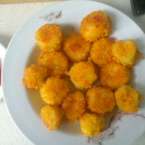 配料:雞蛋清100克,面包屑35克,煉乳(甜,罐頭)100克,淀粉50克,色拉油100克