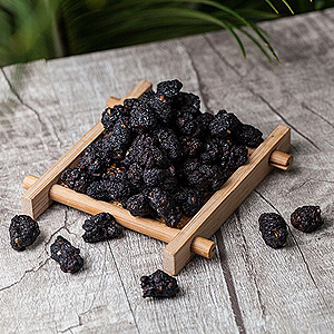 桑葚又叫桑果、桑棗,味甜汁多,是不少人喜愛的水果之一。成熟的桑葚酸甜適口,以個大、肉厚、色紫紅、糖分足者為佳。但桑葚是季節(jié)性水果,并非四季都有產(chǎn),所以人們一般會將桑葚曬干制成桑葚干,這樣就可以隨時食用了。黃桑葚干后呈深黃偏黑色。黑桑葚(紫桑椹)干后呈深紫黑色。