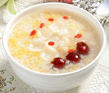 5、取酸棗仁30克,粳米50克,紅糖適量。將酸棗仁搗碎用紗布袋包扎,與粳米同入砂鍋內(nèi),加水500毫升,煮至米爛湯稠?;穑缓笕〕黾啿即挥茫蛹t糖,蓋緊蓋,燜5分鐘即可。每晚臨睡前1小時(shí),溫?zé)岱?