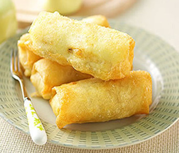 新馬一帶有名的小吃“炸香蕉卷”。炸香蕉卷要做得好,除了要選用結(jié)實的香蕉肉,調(diào)配面漿也很重要。這檔炸香蕉的面漿調(diào)得特別細(xì)致,薄薄一層包著香蕉肉,又香又脆。炸香蕉卷的做法分為以下幾步。