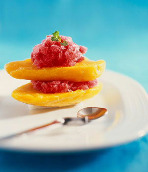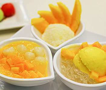 西米洗凈,用清水浸約2小時(shí),用小篩盛起,晾干水分,再放入滾水中煮至浮起呈透明狀,撈起沖凍水,晾干水分,候用;將芒果去皮及核,取半個(gè)芒果肉斜切片(或切?。?,余下的芒果肉與凍滾水、砂糖放攪拌器內(nèi)攪成芒果汁;將煮熟的西米與芒果汁及鮮雜果撈勻,分盛于碗中,面鋪芒果片及其他水果,雪凍后即可進(jìn)食。