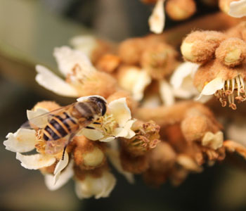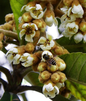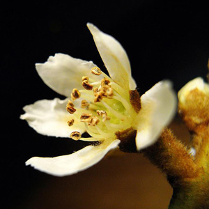 枇杷花冬月開花,黃白色,眾花成簇具有香氣,花瓣五出淺裂蒂大。枇杷花中含有一定量的揮發(fā)油和低聚糖,性質(zhì)比較偏溫性,味道微甘,可以入藥。