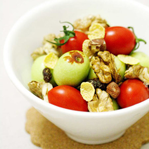 把新鮮的棗子制成美味的水果沙拉是不錯的選擇,與蘋果、橙、香蕉、火龍果、菠蘿等搭配都很好吃,把這些水果切成塊狀,加入沙拉醬攪拌,很簡單就能制作出一碗美味的水果沙拉。