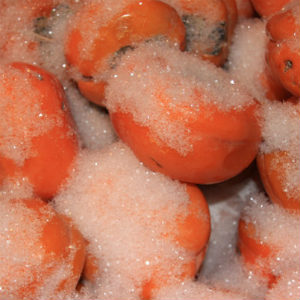2、凍柿子不應連皮同吃。有的人感到吃凍柿子的同時咀嚼柿子皮比單吃柿子更有味道,其實這種吃法是不科學的。因為凍柿子中的鞣酸絕大多數(shù)集中在皮中,在柿子脫澀時,不可能將其中的鞣酸全部脫盡,如果連皮一起吃更容易形成胃柿石,尤其是脫澀工藝不完善時,其皮中含的鞣酸更多。