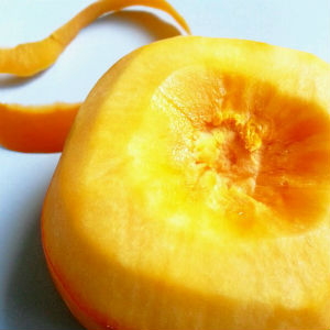 1、柿子洗凈,瀝干水分,再用削皮刀削去柿子表皮。