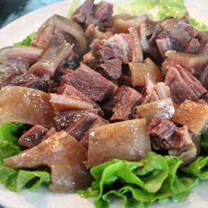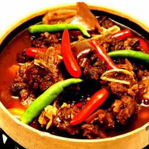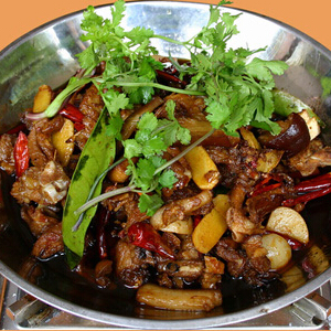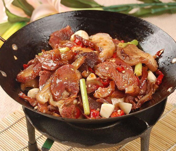 制法:將狗肉切成4厘米見方塊,用清水漂洗2次,控干水分,將薄荷洗凈,摘取嫩尖。炒鍋上火,注入菜子油,燒至7成熟,下草果、大料、花椒、白糖、鹽、干辣椒段、蔥、姜、醬油,下狗肉煸炒20分鐘,注入肉湯,燒開后倒入砂鍋。將沙鍋上火,把白酒分兩次加入,改用小火,燜約1小時(shí),湯汁收稠時(shí),放上薄荷,連同沙鍋上桌。