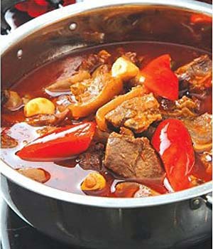 5、以文火燉至狗肉熟爛,加入食鹽調(diào)味即可。