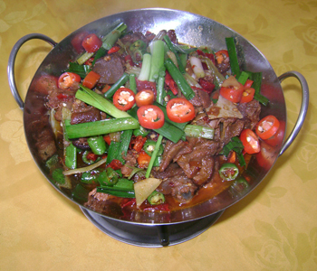 食材:狗肉、干辣椒、姜、蔥。