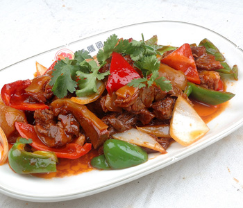 2、準(zhǔn)備炒鍋,倒入油,放入胡椒粉炒狗肉,翻炒一會(huì)兒就ok了。