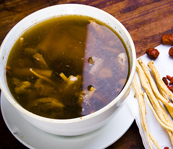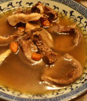 5、把當(dāng)歸放入豬心湯內(nèi),最后放入香菇,用中火煮半小時即可。