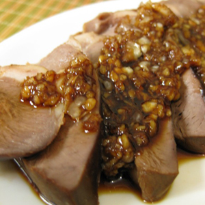 材料:豬心、食鹽、醋、冰糖、花椒、料酒、生抽、老抽、蒜泥、香葉、八角、姜、蒜骨