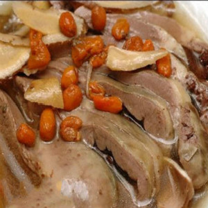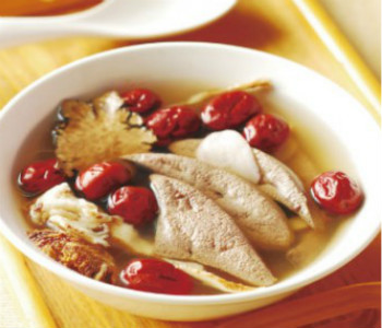 原料:豬心500克、高麗參50克、枸杞子50克、鹽4克。