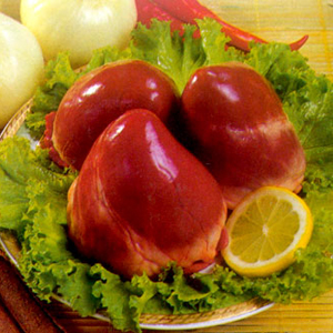新鮮的豬心,整個的表面呈現(xiàn)出紅色或者淡紅色,而且摸起來非常的結(jié)實(shí),而且富有彈性。