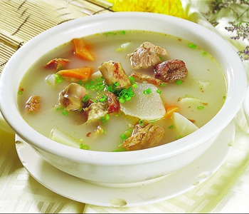 2、燉骨頭湯的時(shí)候,加入幾滴白醋,因?yàn)榇啄苁构穷^里的鈣、磷溶解到湯內(nèi),同時(shí)不要過早加鹽,因?yàn)辂}能使肉里含的水分很快跑出來,會加快蛋白質(zhì)的凝固,影響湯的味道。