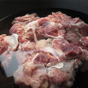 4、豬骨洗干凈后,焯一下,用清水沖洗干凈,并瀝干水份備用。